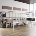 Voor de bevestiging van een frontaal of zijdelings akoestisch paneel op een bureau.