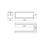 Inbouwafmetingen (mm): 150 x 50.