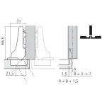 Scharnier CLIP top 110° voor halfopliggende deur, zonder veer