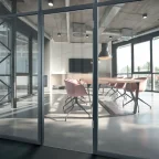 Voor glasdeur in gelijkliggend vlak.