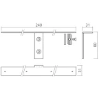 Maximale belasting van 90 kg gelijkmatig verdeeld over een boorafstand van 900 mm in wandoplossing en 80 kg over een boorafstand van 600 mm in plafondoplossing.