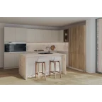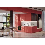 Front gemelamineerd in dikte 18 mm ommanteld met mat gelakt papier met UV-behandeling (acrylvernis).