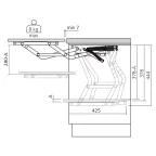 Diepte van het werkblad (min (mm): 425) varieert afhankelijk van het werkblad op de kast: zie voorschriften.