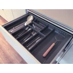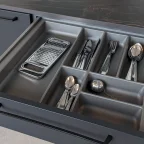 Voorzien van een brede inkortbare boord waardoor deze perfect aan de lade kan aangepast worden (voorzie een afkorting van 6 mm voor een MERIVOBOX-lade).