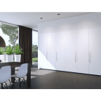 Bij geopende deuren hebt u toegang tot de volledige kastbreedte, in gesloten toestand liggen de deuren perfect in hetzelfde vlak.
