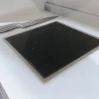 Plaat in zwarte graniet met kader in inox om in te bouwen in een werkblad.