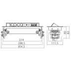 Bestaat uit 2 stopcontacten 230 V, 1 USB A+C poorten/lader, 1 RJ45 categorie 6 en USB data transfer.