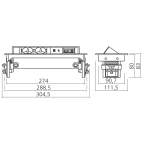 Bestaat uit 2 stopcontacten 230 V, 1 USB A+C poorten/lader, 1 RJ45 categorie 6 en USB data transfer.