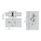 Vernikkelde kruismontageplaat met voorgemonteerde euroschroeven met een schroeflengte van 8,5 mm.