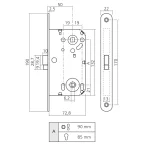 Magnetisch en mechanisch slot (ook voor WC-slot) met voorplaat van 190 x 22 mm.