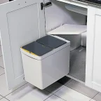 Wordt meegenomen door het openen van de deur en ook het deksel opent automatisch, 2 afvalemmers voor sortering.