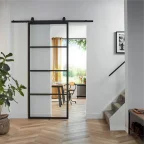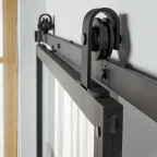Schuifdeurbeslag van staal met glas en aluminium deur om te monteren.