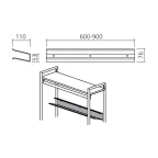 Metalen tablet ontworpen voor 3 paar schoenen voor lengte van 600 mm en 4 paar voor een lengte van 900 mm.