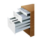 Bestaat uit 2 metalen laden, 1 hangmappenraam en 1 pennenlade.